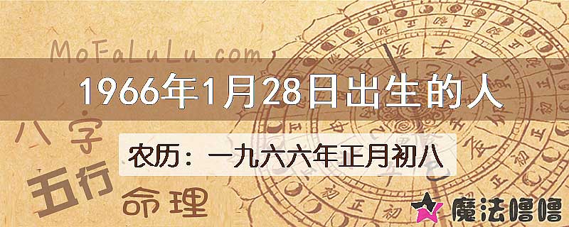 1966年1月28日阳历出生的人八字/五行/命理分析