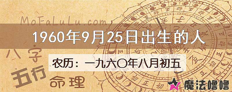 | 公历1960年9月25日 | 农历一九六〇年八月初五 |