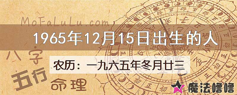 | 公历1965年12月15日 | 农历一九六五年冬月廿三 |