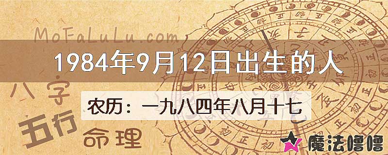 | 公历1984年9月12日 | 农历一九八四年八月十七 |