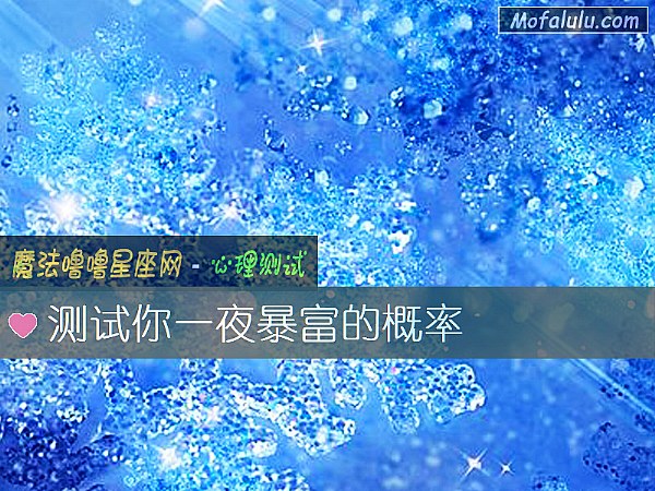 “你想什么都不做就一夜暴富吗?”“你想什么都不干就坐拥千万资产吗?”其实这种事情也不是不可能,有的人随意买个彩票就中了头等奖,就实现了一夜暴富的愿望了!那么奇迹会不会降临在你头上呢?想知道你一夜暴富的概率吗?通过以下免费的财富测试试题,看看你一夜暴富的概率的测试结果如何吧!