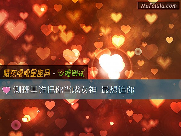 学生时代的女神往往是给大家留下了深刻的印象的,当然了,每个人心目中的女神是不一样的,因为每个人对爱情的追求是不一样的。那么班里谁把你当成女神,最想追你?通过以下免费的趣味测试试题,看看测班里谁把你当成女神 最想追你的测试结果如何吧!