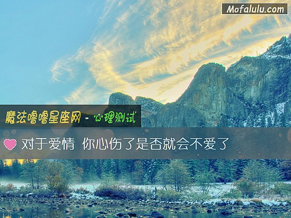 对于爱情每个人都有自己不一样的理解和处理方式,在面对爱情的伤害的时候,每个人的承受能力也是不一样的。有的人承受能力比较强,他们就算被爱所伤,但是他们依旧会选择勇敢的去相信爱情。但是有的人在受了伤之后他们就不敢再去爱了,那么你心伤了是否久不会爱了呢?通过以下免费的爱情测试试题,看看对于爱情 你心伤了是否就会不爱了的测试结果如何吧。