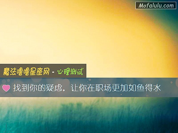 在职场上,你总觉得有什么东西阻挡了你前进的道路,变得很焦虑。首先你要找到疑虑,最后才能解决问题。做一道能力测试,看看到底有什么样的问题让你在职场上频频受阻。找到问题就能解决问题了,职场如鱼得水就妥妥的。