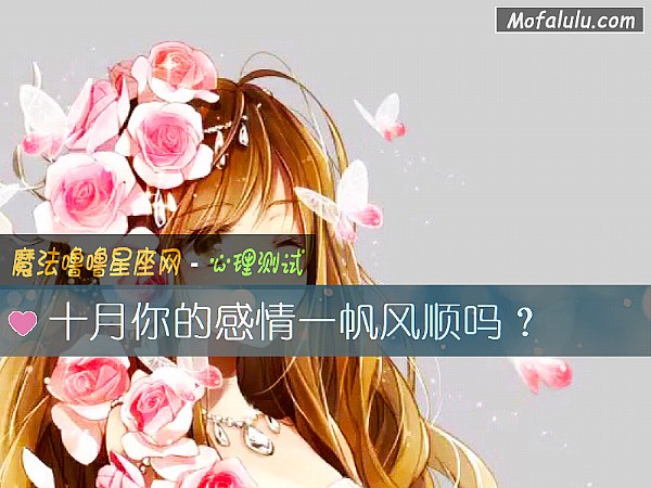 感情能够达到一帆风顺的状态自然是最好的,没有谁会希望自己的感情磕磕绊绊的,感情越顺利,人的心情也就越好,对未来也会越期待。那么十月你的感情一帆风顺吗?通过以下免费的爱情测试试题,看看十月你的感情一帆风顺吗的测试结果如何吧!