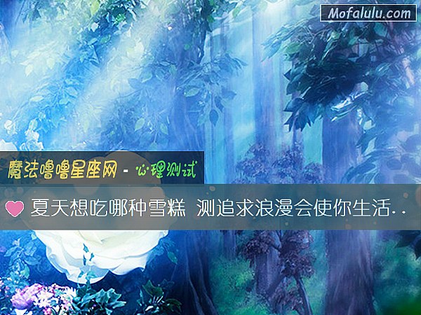 现在的人生活条件逐渐提高,骨子里的浪漫因子被激发,凡事都讲究浪漫,有仪式感,能够成为纪念,能够老来回忆,但是追求浪漫有时候会让自己的生活变得一团糟吗?测试一下就知道了,一起来做个趣味测试,夏天想吃哪种雪糕?测追求浪漫会使你生活变糟吗?