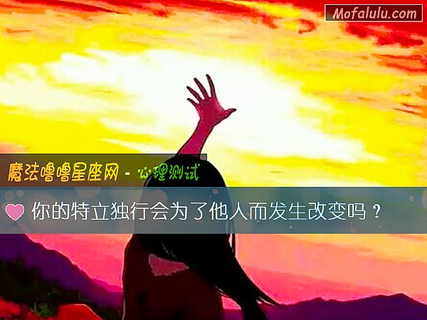 这个花花世界中,每个人都是一个个体,每个人就有自己的想法。特立独行的性子有时候会让周围人远离自己,融入不进生活中的小集体,毕竟别人眼里可能就是一个孤傲的代表。你是一个特立独行的人吗?你的特立独行会为了他人而发生改变吗?通过以下免费的综合测试试题,看看你的特立独行会为了他人而发生改变吗的测试结果如何吧!