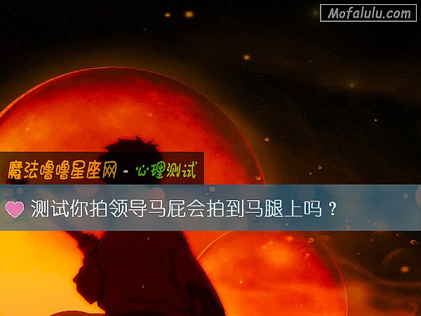 这是《测试你拍领导马屁会拍到马腿上吗?》的测试结果,没有完成题目测试之前是隐藏起来的,不要偷看喔!