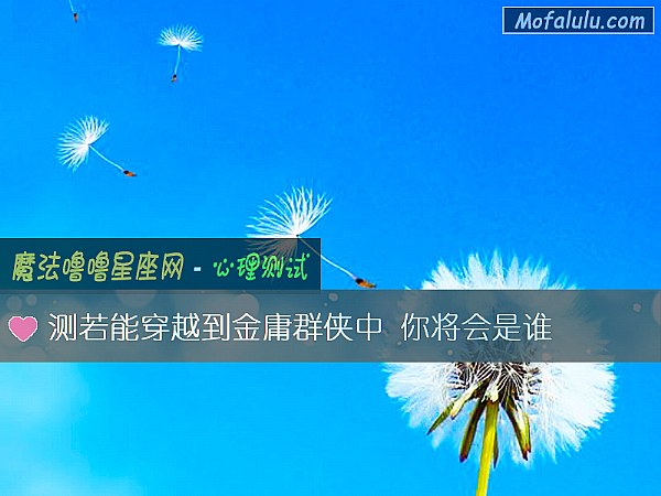 一见杨过误终身,如果穿越到金庸武侠中你会是杨过。你拥有非常帅气的外表,而且你在爱情上十分的专一,你喜欢上一个人的话,就再也不会去改变的。哪怕有很多其他的追求者,你也从未心动过,因为你的心一直在对方身上。mofalulu