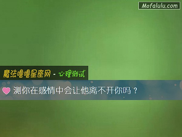 这是《测你在感情中会让他离不开你吗?》的测试结果,没有完成题目测试之前是隐藏起来的,不要偷看喔!