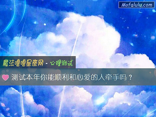 很多人都把本年当成愿望实现的一个年份,因为新的开始就会有新的希望。没有对象的,也会觉得今年没有就算了,明年能够拥有也不错。那么本年你能顺利和心爱的人牵手吗?通过以下免费的爱情测试试题,看看本年你能顺利和心爱的人牵手吗的测试结果如何吧!