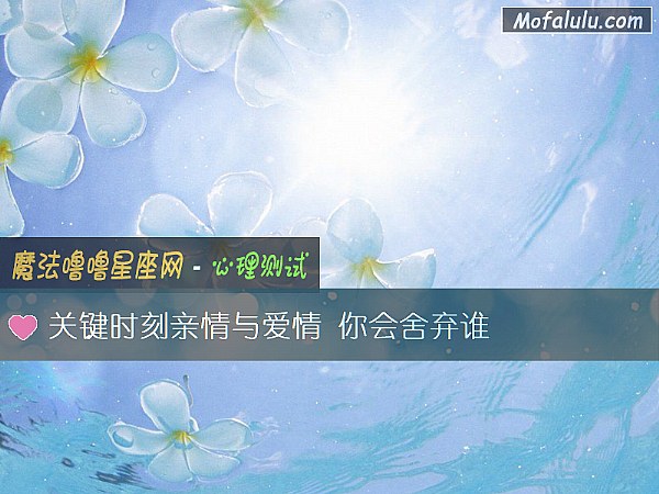 生活中,爱情和亲情发生冲突其实并不算少见,爱情和亲情的抉择对每个人来说都是很难的,大多数时候,大家希望自己的爱情和亲情能够和平共处。那么关键时刻亲情与爱情,你会舍弃谁?通过以下免费的综合测试试题,看看关键时刻亲情与爱情 你会舍弃谁的测试结果如何吧。