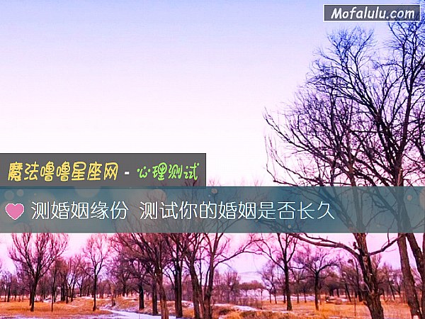 自然是每个人都希望自己的婚姻能够长久的,但是很多时候我们能够管得住自己,却是管不住另一半的。谁知道对方会不会被诱惑,会不会想要跟其他人在一起。那么你的婚姻是否长久呢?通过以下免费的婚姻测试试题,看看测婚姻缘份 你的婚姻是否长久的测试结果如何吧。