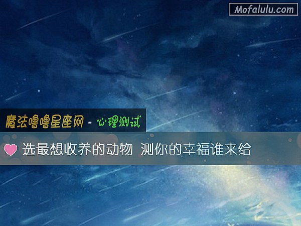 这是《选最想收养的动物 测你的幸福谁来给》的测试结果,没有完成题目测试之前是隐藏起来的,不要偷看喔!